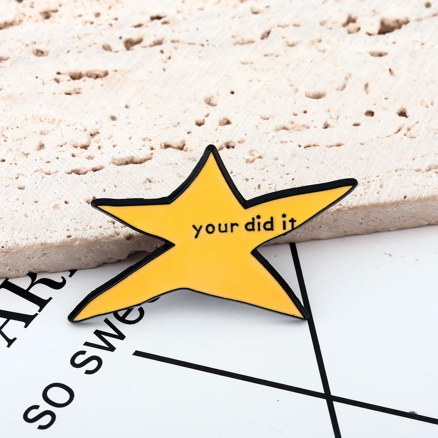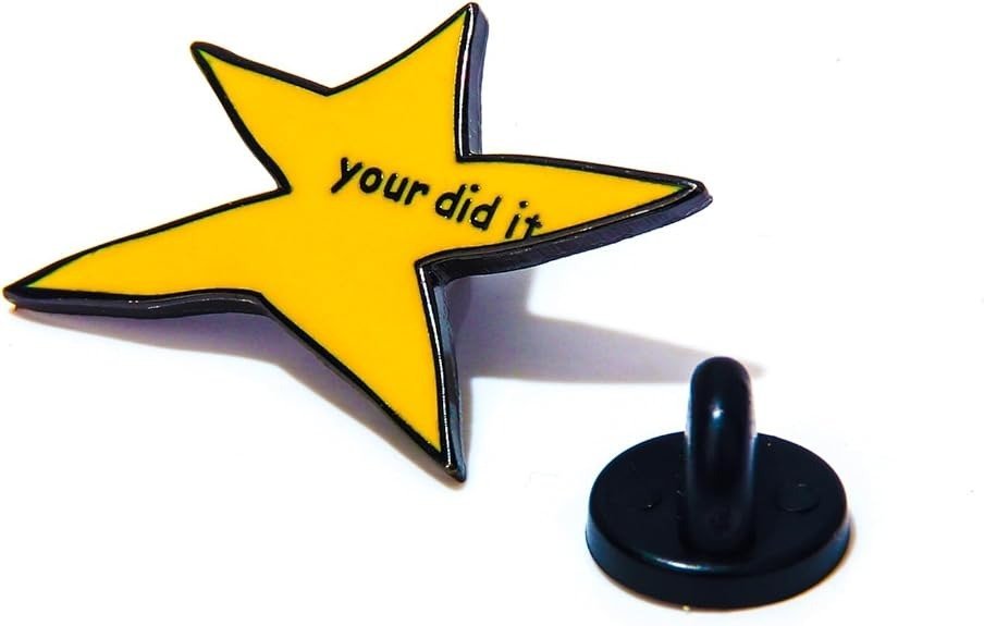 Kiekvienas pasiekimas, nesvarbu, koks mažas, nusipelno būti atšvęstas, net jei ir su gramatinėmis klaidomis! Ši žvaigždė emalio segtukas yra puikus statement piece visiems, kurie myli internet culture ir gerą humorą. Ryškiai geltona žvaigždė, tradicinis sėkmės simbolis, yra pagardinta tyčine gramatine klaida – užrašu „your did it“ (vietoje „you did it“). Šis užrašas paverčia pin’ą populiariuoju memu, puikiai atspindinčiu ironišką, bet pozityvią online pasaulio dvasią. Tai yra idealus motyvacijos segtukas su humoro doze, kuris pasako: „Sveikiname su pasiekimu… bet kam čia ta gramatika?“