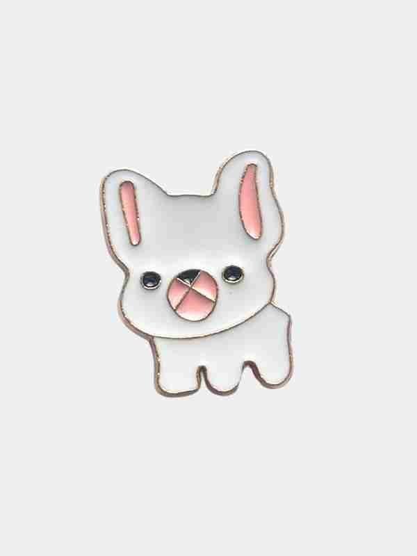 Šio emalio segtuko dizainas pasižymi aiškiomis linijomis ir švelniais pasteliniais tonais. Balta spalva dominuoja, o rausvi akcentai ausyse suteikia segei gyvumo ir „mielumo“ faktoriaus. Auksinio atspalvio metalinis rėmelis suteikia aksesuarui prabangos pojūtį. Šis šunų segtukas puikiai tinka derinti su kitais minimalistiniais ar juodai baltais aksesuarais.
