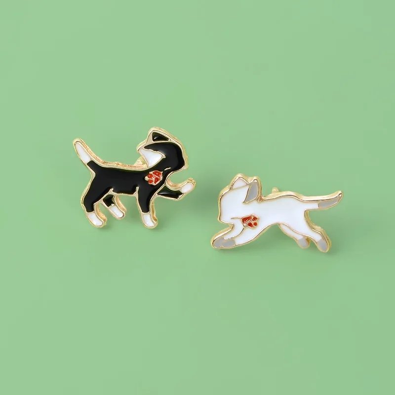 Šis kačių emalio segtukų rinkinys – tai dviguba dozė mielumo ir stiliaus! Tai idealus aksesuaras geriausiems draugams, poroms arba tiems, kurie mėgsta kontrastingas detales. Juodas ir baltas kačiukai, žaismingai bėgantys su mažomis boružėlėmis ant nugarų, simbolizuoja sėkmę, draugystę ir gyvenimo džiaugsmą. Tai ne tik emalio broškos – tai istorija apie du neišskiriamus draugus, kurią galite nešiotis kartu.